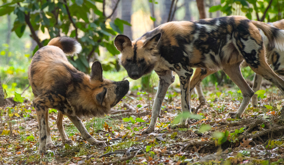 African painted dogs live primarily in the grasslands of East Africa. They are highly social animals, working together while hunting to catch their prey.
