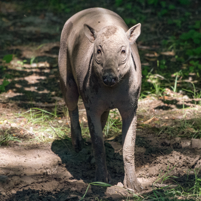 These pigs live in tropical rainforests on only a few Indonesian Islands. Male babirusas have long, backward curving upper tusks; both sexes have lower tusks.